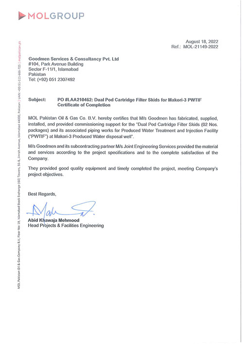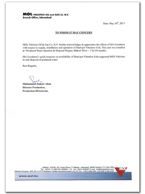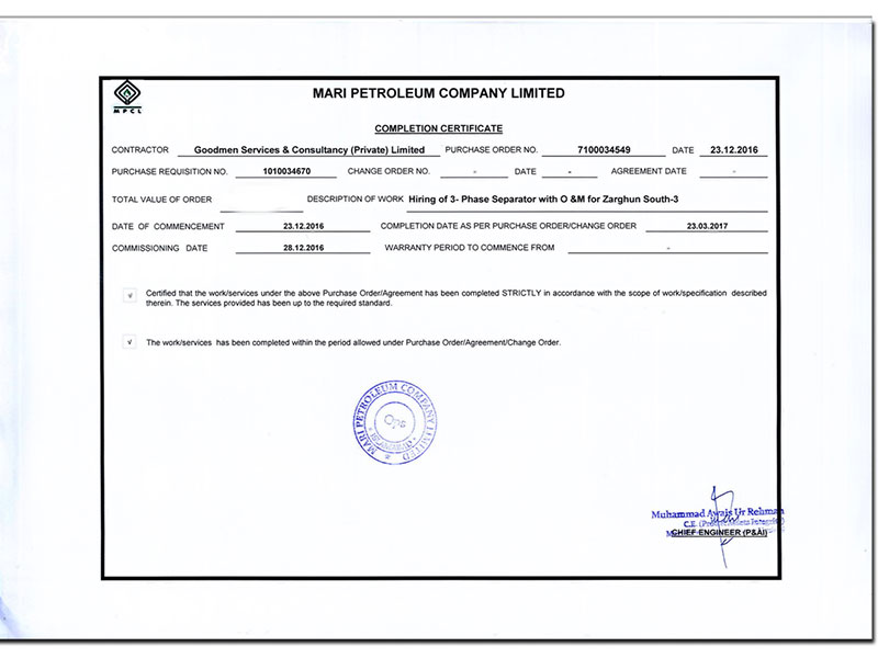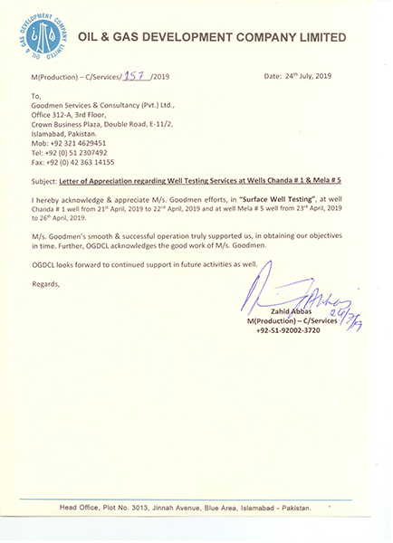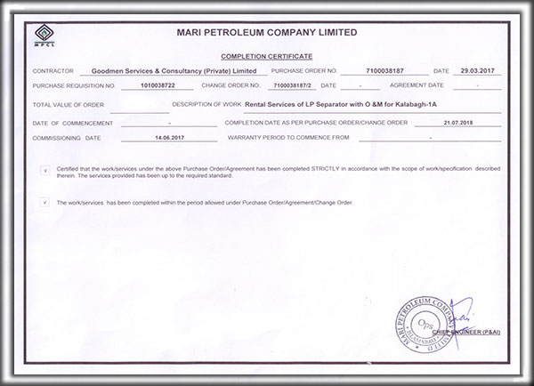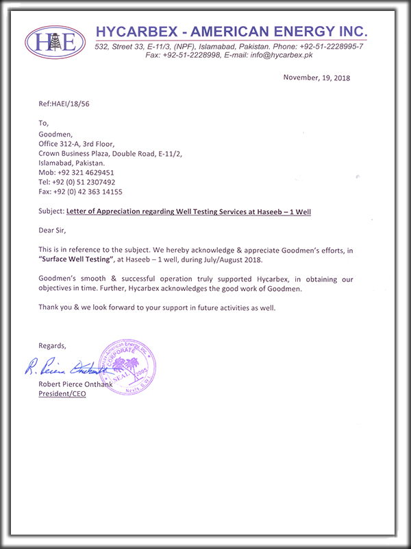 Our work always appreciated by the clients. We have received rewards & appreciations from our clients. Goodmen remains dedicated to work with similar faith & enthusiasm, in oilfield services.